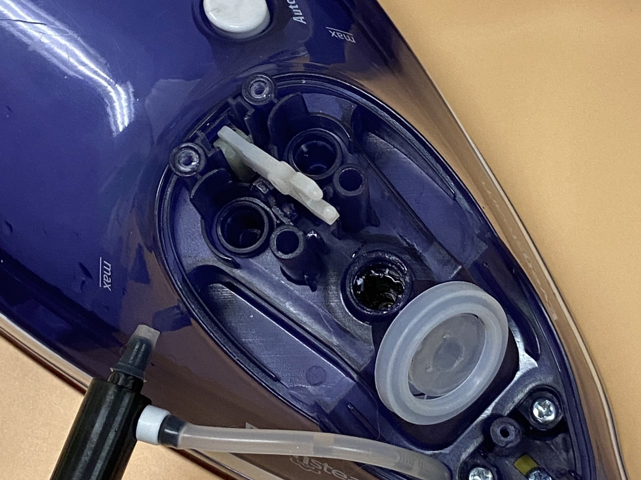 - جرمگیری: حالا که اتو باز است، اگر سوراخهای کف اتو گچ گرفتهاند، با کمی سرکه و مسواک آنها را از داخل تمیز کنید.